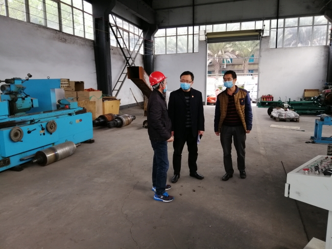 为帮助企业做好复工复产与新冠肺炎防控工作,2020年2月17、18日,区经济和信息化局局长高金鹏带队深入国鑫机械、攀煤机制等辖区重点工业企业开展复工复产指导和新冠肺炎防控检查工作,副局长易代泉及相关工作人员参与检查。